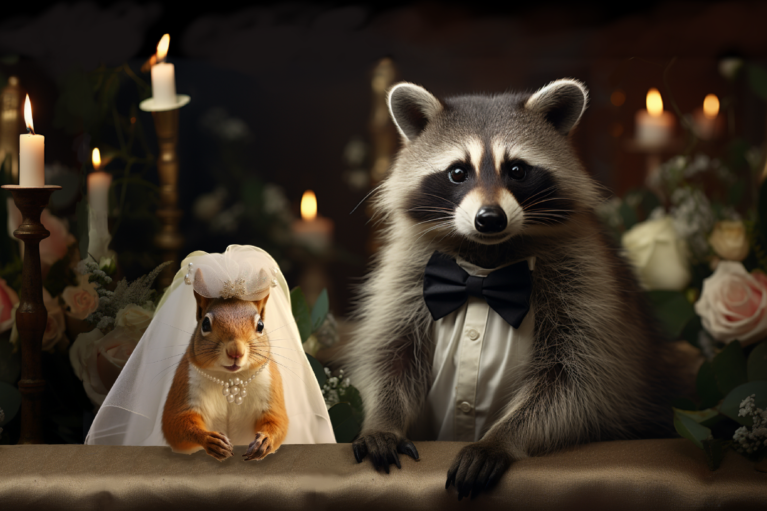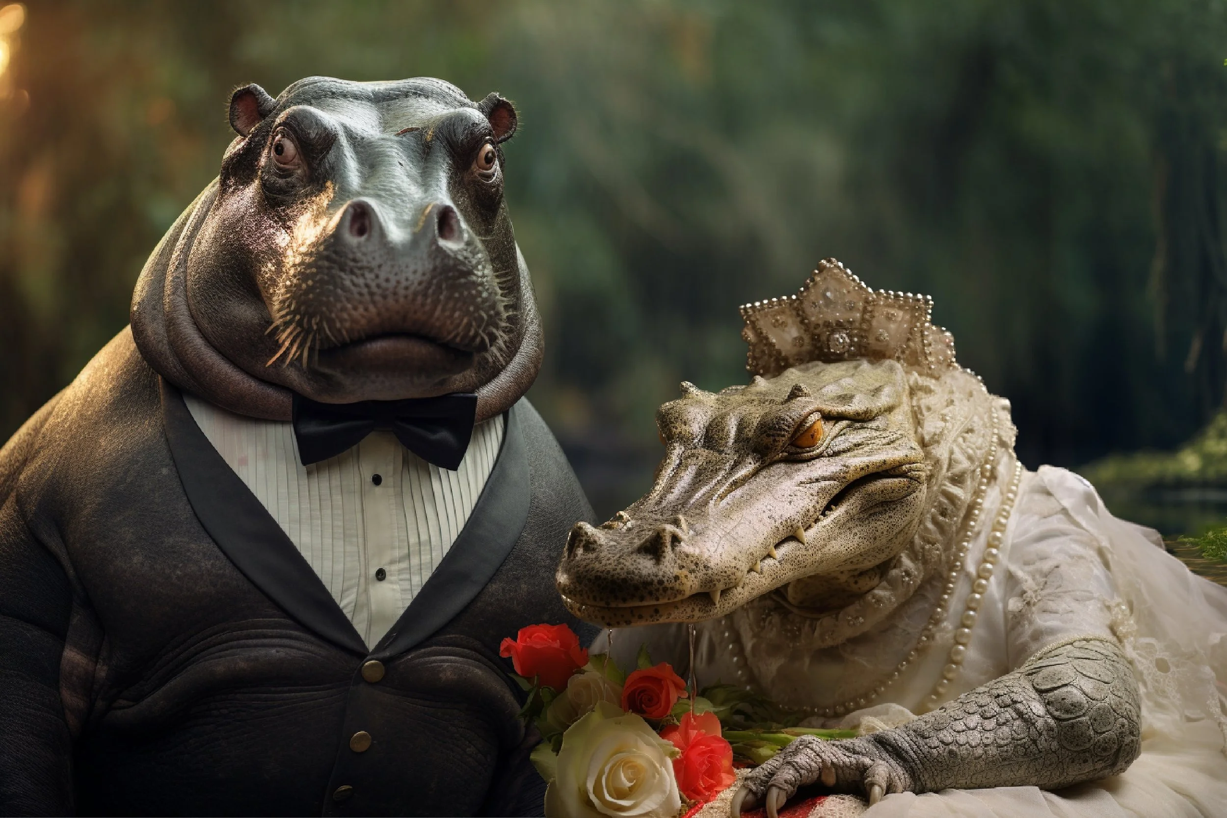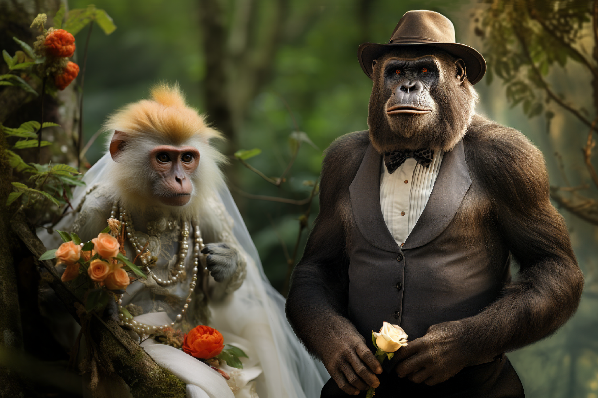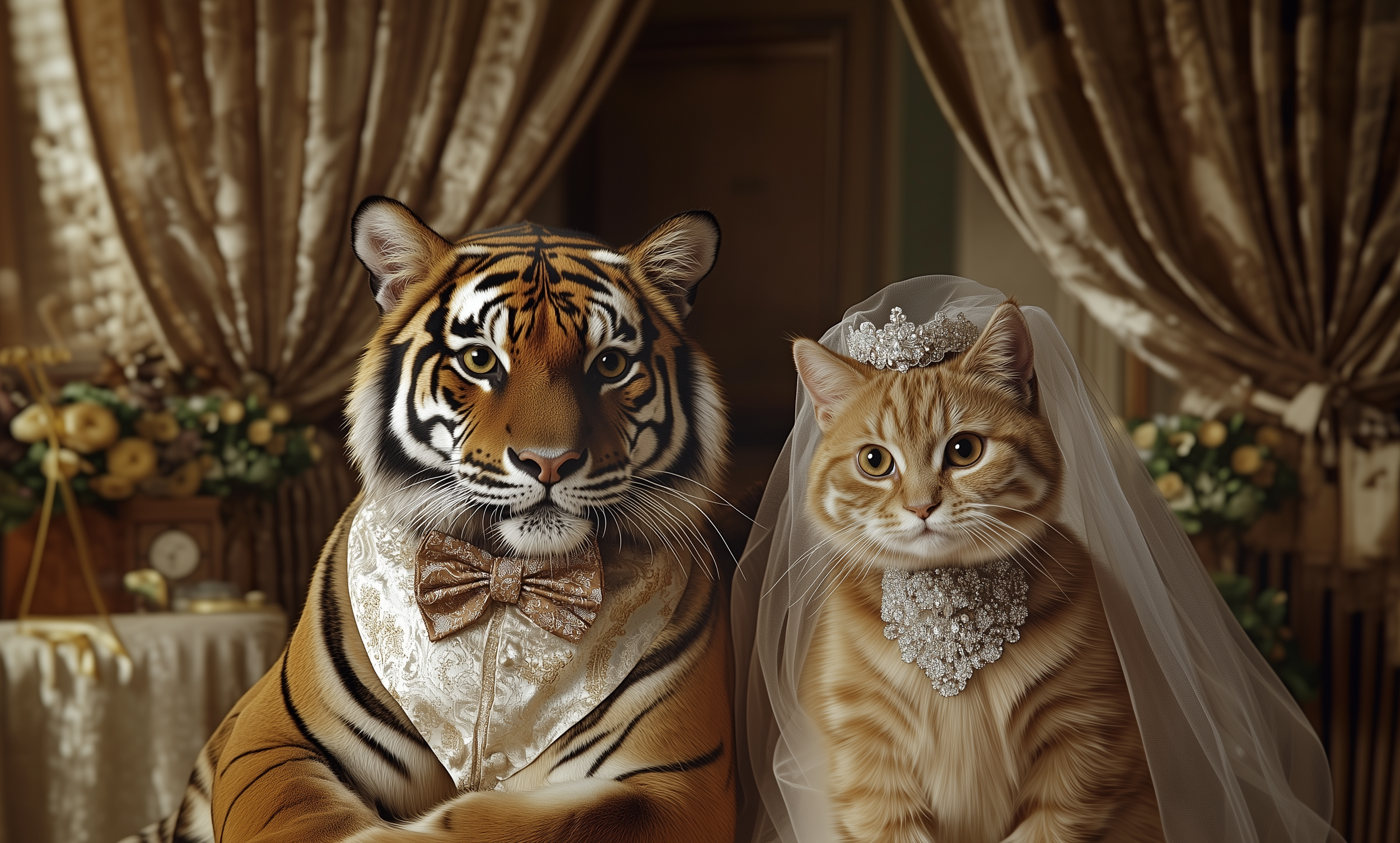 Welcome to Wildly United These whimsical animal pairings in wedding attire celebrate creative connections and unexpected love. Each composition is a collage of AI elements, reimagined with digital artisty to tell a surprising story.