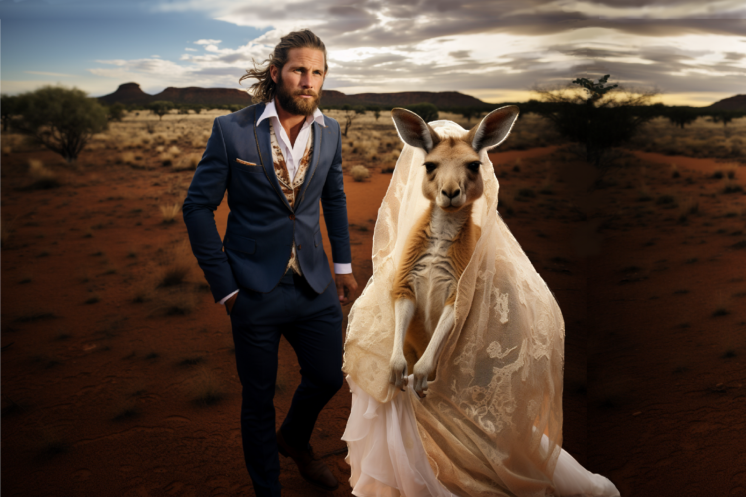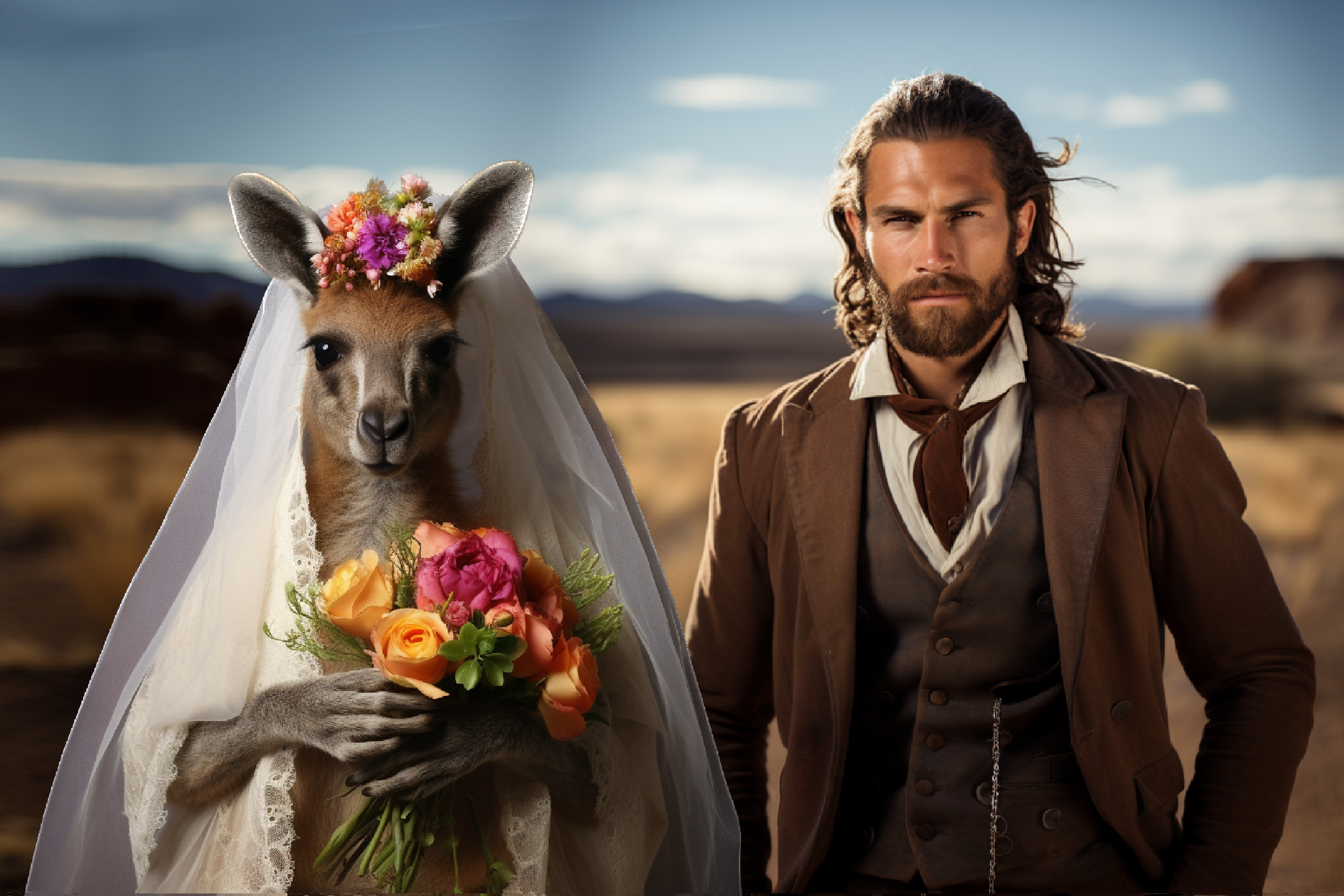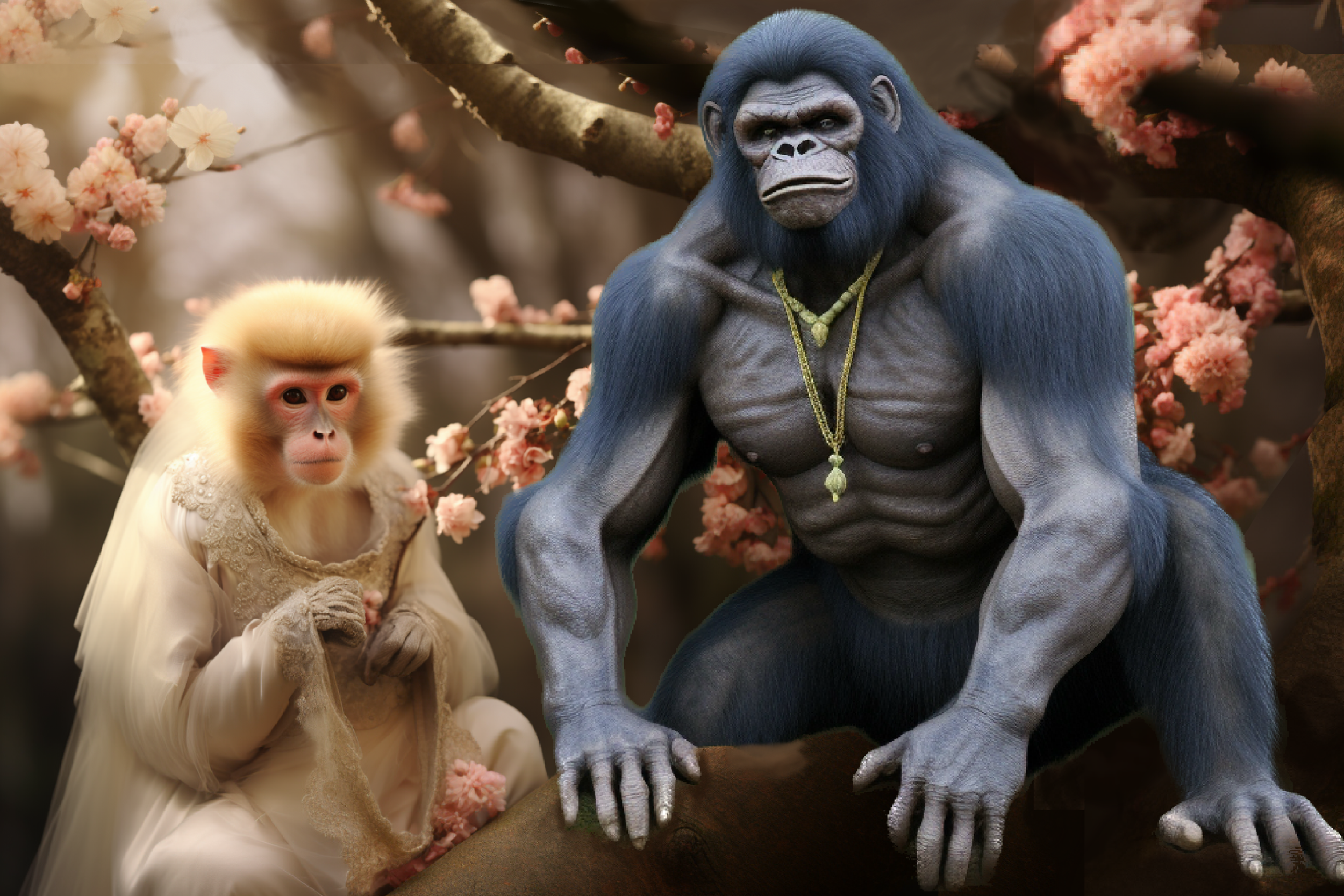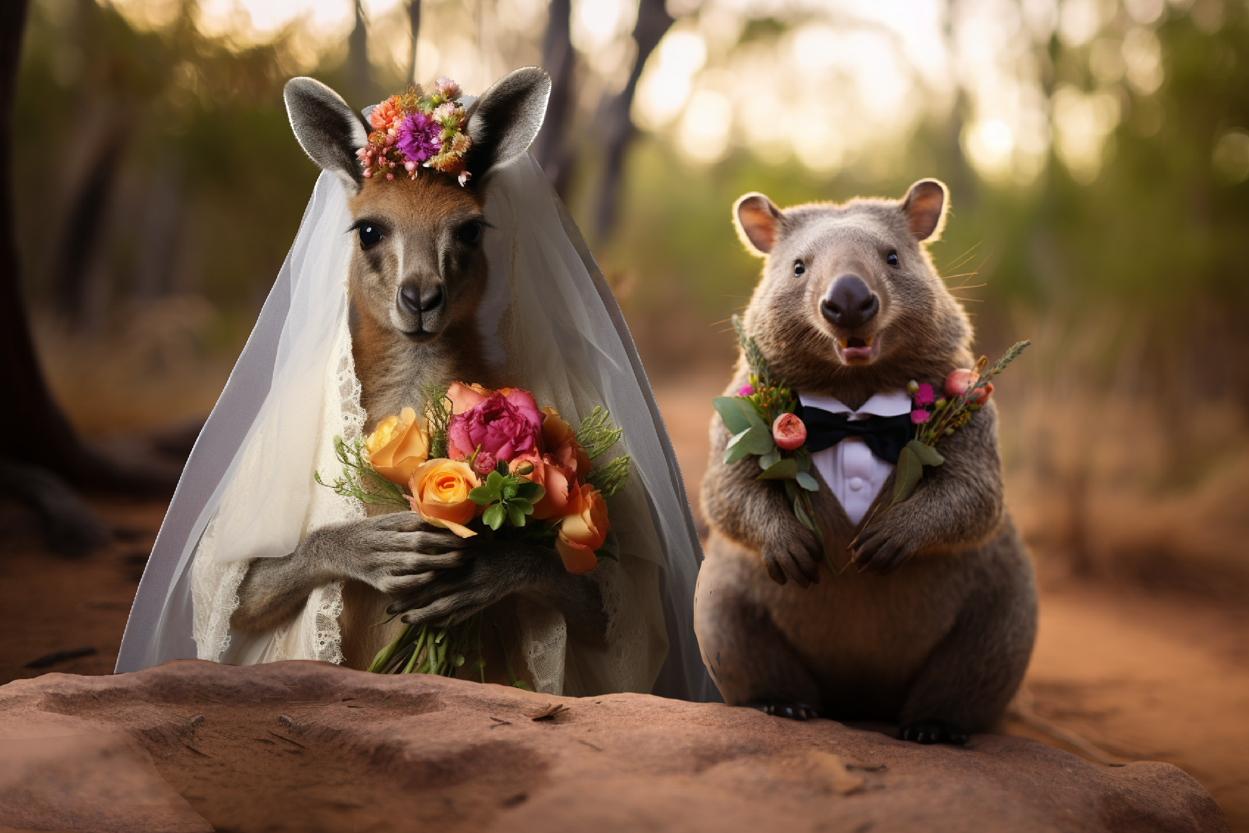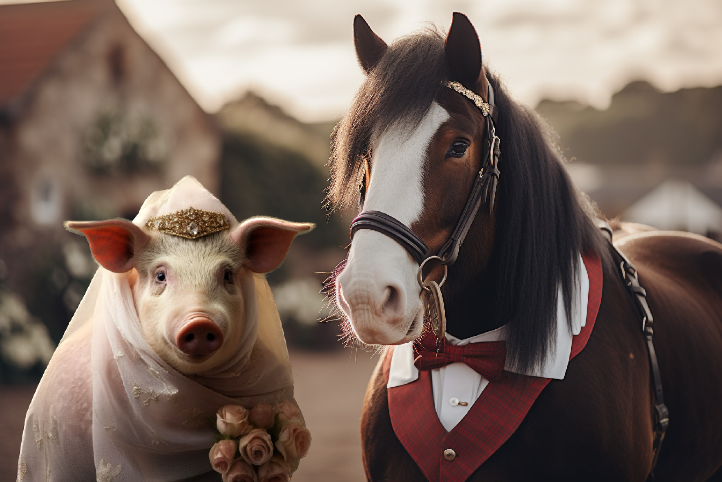Welcome to Wildly United These whimsical animal pairings in wedding attire celebrate creative connections and unexpected love. Each composition is a collage of AI elements, reimagined with digital artisty to tell a surprising story.
